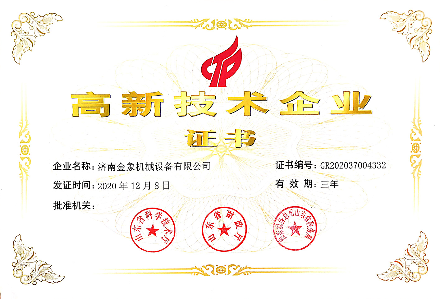 根據國家《高新技術企業認定管理辦法》和《高新技術企業認定管理工作指引》的相關規定,濟南金象機械設備有限公司被認定為國家級高新技術企業。